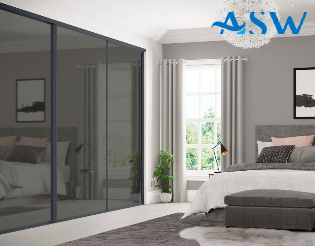 Fully Framed Sliding Wardrobe Doors Grey Mirror