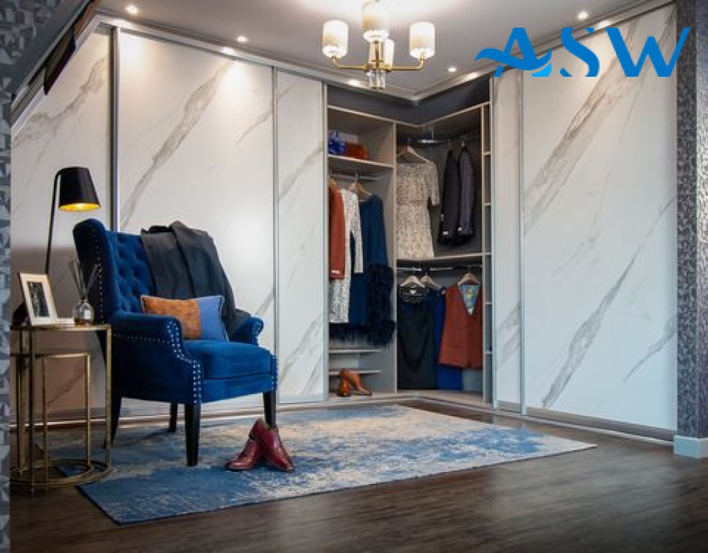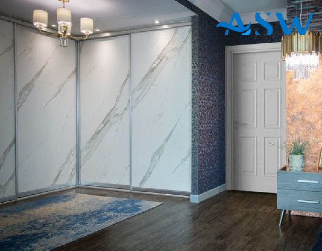 Frameless Sliding Wardrobe Doors Textured Marble